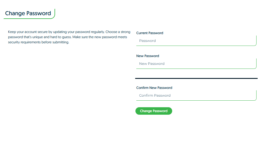 One you have entered these details, you can click "Change Password" and it will be changed to your newly entered password for you to use whenever you log in.