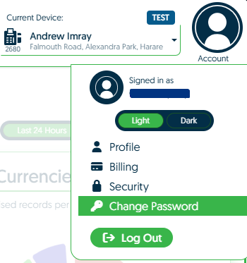 Once logged in, navigate to the top right side of your screen and select the account icon (labelled "Account") and click on Change Password.