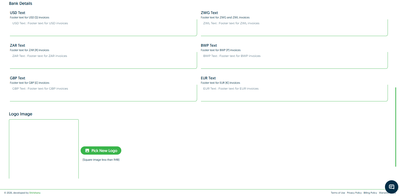 In the ZWL text box fill in your ZWG / Local Currency banking details