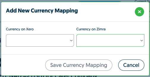 - Select the Currency on Xero and the Currency on ZIMRA you want to match.