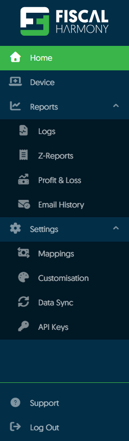 Once the device has been added we will need to Map the Tax Rates and Currencies. This can be done by logging into the Fiscal Harmony app on