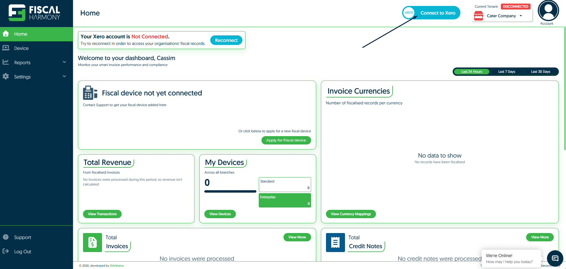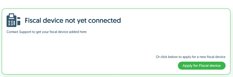 When you login to your dashboard, you will now be presented with a widget that says Fiscal device not yet connected: