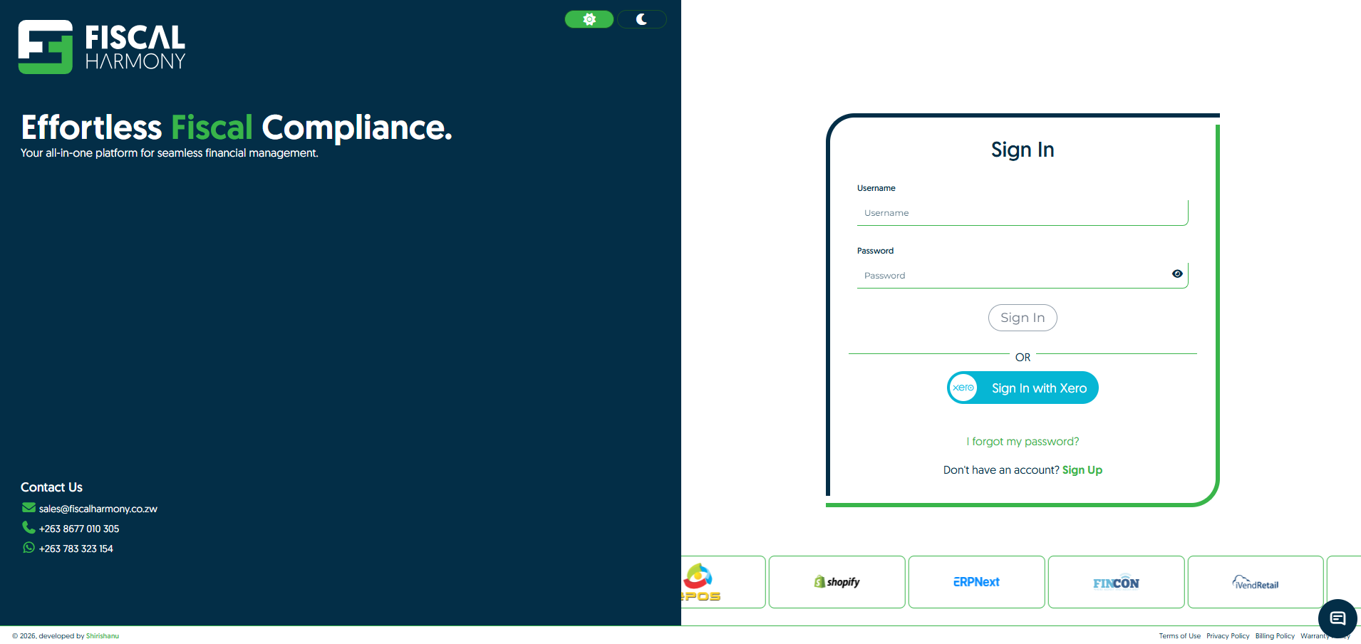 - Go to https://app.fiscalharmony.co.zw/login/.