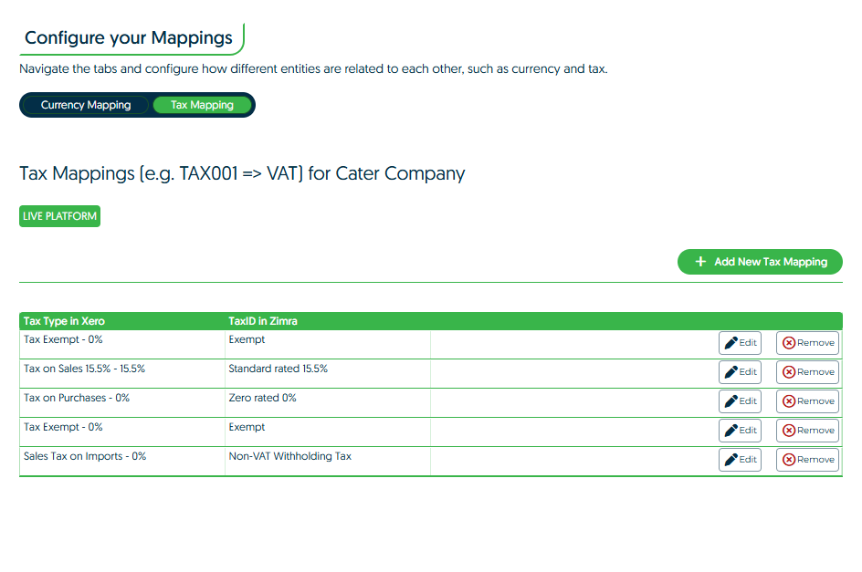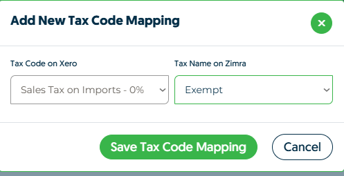 - Click "Save Tax Code Mapping" to create the mapping.