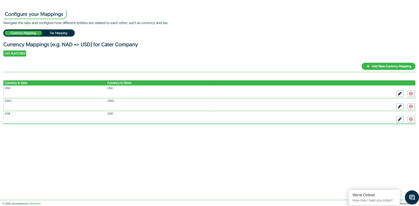 - Select the "Add New Currency Mapping" button.