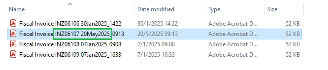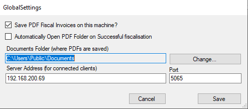 The fiscalized invoices are stored on your local machine. To locate them, click on Global Settings you will see a file path highlighted in blue. That’s the folder where your PDF invoices are saved.