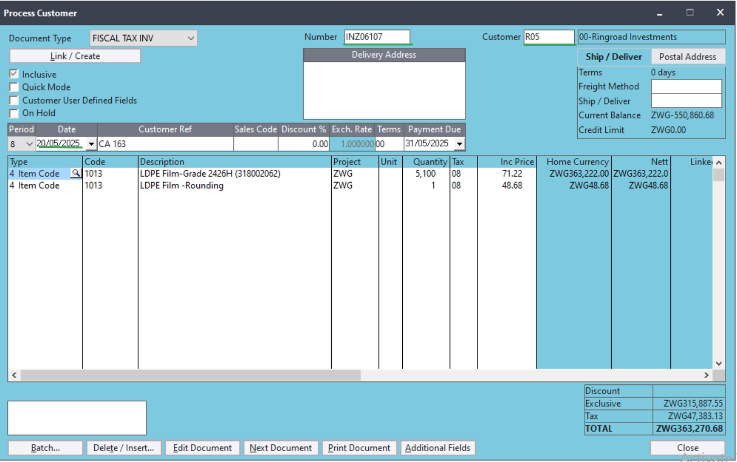 Step 3: Enter the Invoice Date, Reference Number, and Delivery Details.