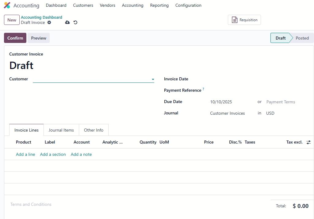 Once all fields are filled, click Confirm to process and post the bill to accounting.